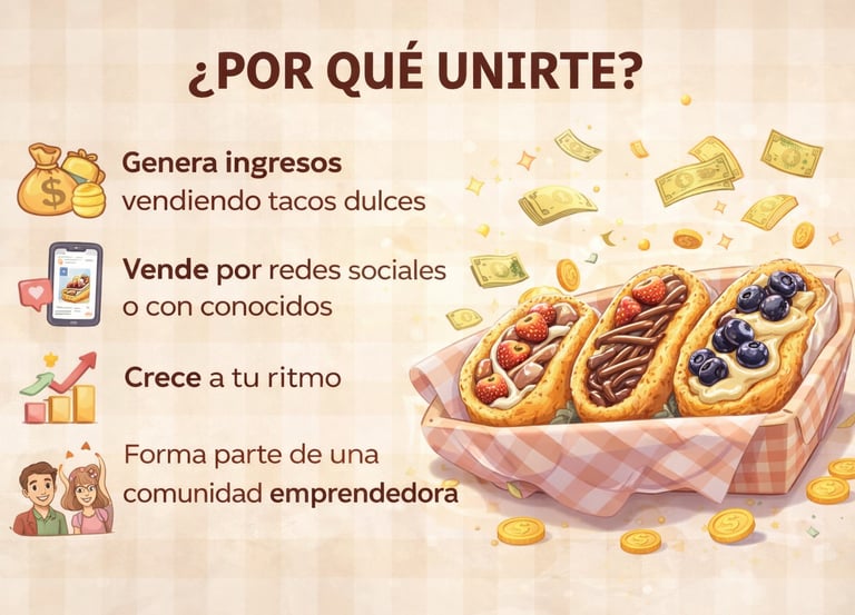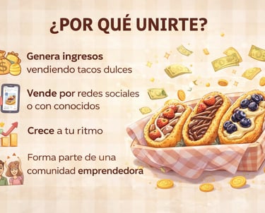 En Taqué Dulce creamos tacos de canasta dulces con un concepto innovador, combinando sabor, creatividad y una presentación única.